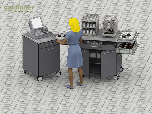 Ob Kellner-, Service-, oder Abräumstation, Order-, Cashdesk oder Coffeeshop, für alle Anwendungen auch für die Selbstbedienung bietet Gardinner GastrOutdoor