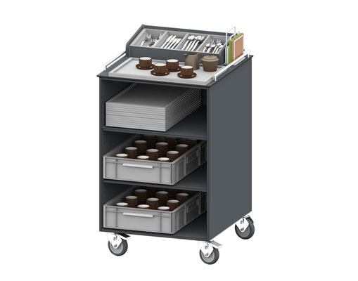 Ausgestattet mit speziellen Geräten-, Einsätzen und Behältern für Besteck, Geschirr und sonstigen Utensilien zur übersichtlichen Aufbewahrung und praktischen Bereitstellung im Servicebereich sind die Servicemodule von Gardinner ein unentbehrlicher Helfer für einen reibungslosen Servicebetrieb.