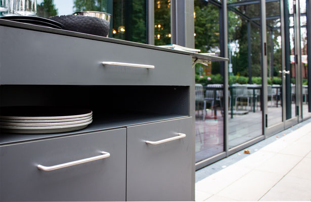 Dauerhaft auf der Terrasse, im Biergarten, absolut wetterfest, in mobiler Ausführung flexibel einsetzbar im Outdoor Bereich verkürzt sie die Wege des Servicepersonals erheblich und erspart damit viel Zeit und Lauferei.