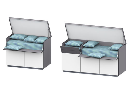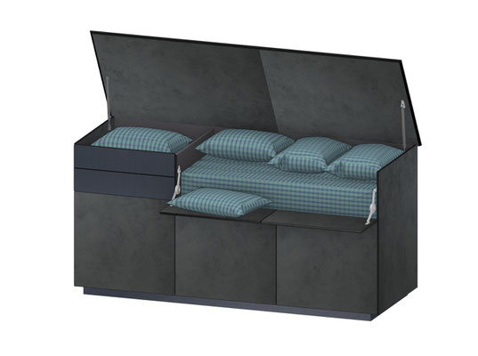 Obere Front zum aufklappen, ermöglicht müheloses Verstauen der Polster